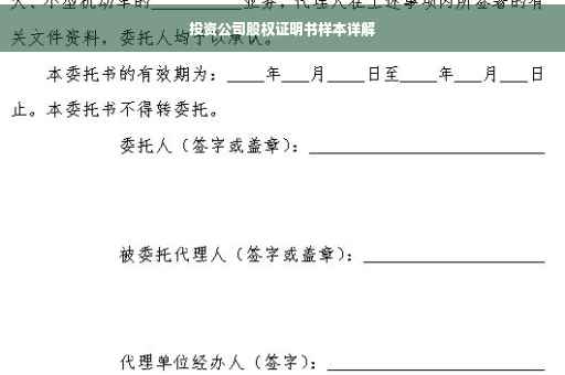 随着市场经济的发展,越来越多的人和企业选择投资股权,以获取更多的经济利益和话语权,投资公司股权证明书是证明投资者拥有公司股权的重要文件,本文将详细介绍投资公司股权证明书的内容、格式及作用,并为大家提供一个样本作为参考。