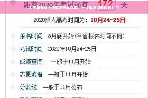 大学毕业证丢失,不必慌张,这里有一份指南帮你解决烦恼。需要前往原发证学校或教育部门,了解补办毕业证的流程和所需材料。准备好个人身份证明、学历证明以及其他相关证明材料。提交申请后,按照规定的程序进行办理。注意及时备份电子档或其他备份材料以防万一。确保顺利补办毕业证,重新获得学历证明。