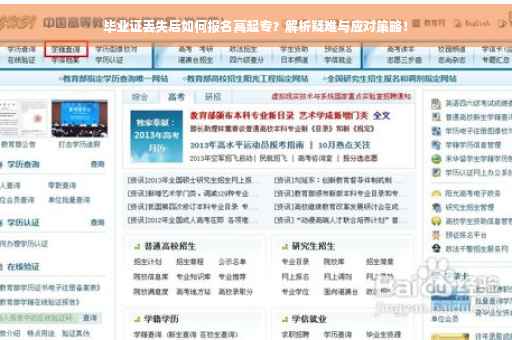 毕业证丢失后,您仍然可以报名高起专,只要通过其他方式证明您的学历和身份,为避免不必要的麻烦,建议您尽快行动,联系原毕业学校补发学历补偿证明,并备份相关证件,在报名过程中,请提前咨询相关部门了解具体要求和流程。