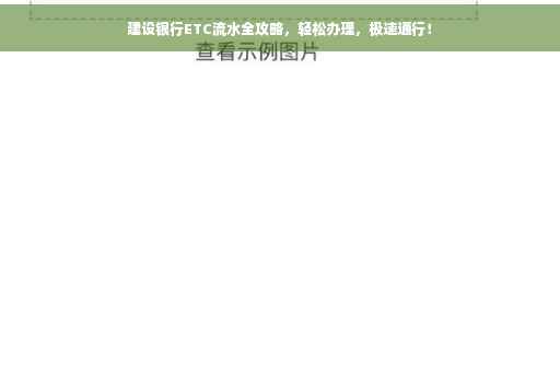 摘要:建设银行办理ETC流水全攻略,为您提供便捷高效的通行体验。从申请到安装,一站式服务让您轻松享受ETC带来的便利。详细步骤和注意事项,助您顺利完成办理流程,轻松出行。