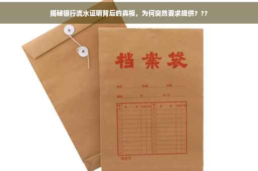 银行要求提供流水证明并非出于某种神秘的考虑,而是基于风险控制、政策调整和内部审查等实际需要,客户在面对这一要求时,应保持冷静,理解并积极配合银行的要求,同时也要注意保护个人信息和账户安全,希望本文能帮助大家更好地了解银行流水证明的相关事宜。
