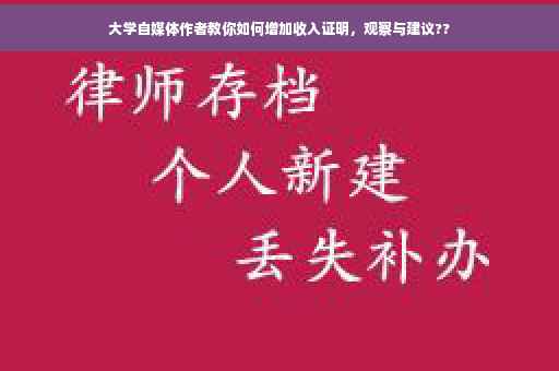 摘要:本文将介绍自媒体作者关于在大学如何增加收入证明的观察与建议。文章指出,大学生可通过自媒体平台创作内容,获得广告收入、读者打赏等额外收入来源,同时建议积极参与校园兼职、学术项目等,提升个人技能和经验,为未来就业增加竞争力。文章强调合理规划个人财务和时间是增加收入的关键。