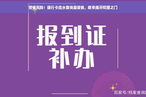 摘要:,,警惕风险!查询对象银行卡流水并非揭开犯罪之门的手段。在合法范围内查询他人银行卡流水是必要的,如涉及财务纠纷或家庭财产调查等。但需注意尊重他人隐私和合法权利,避免侵犯他人合法权益。查询应通过正规途径,如银行柜台或网上银行等,并遵守相关法律法规。切勿滥用查询结果,以免陷入不必要的法律风险。