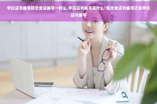 学历证书编号和学位证书编号不一样。 现在的毕业证和学位证后面几位数字都是电脑随机产生的编码,毕业证是毕业证编码,学位证是学位证编码,二者肯定不一样的,后面的顺序也没有什么规律可循。 学历证书是学制系统内实施学历教育的学校或者其他教育机构,对完成了学制系统内一定教育阶段的学习任务的受教育者所颁发的文凭。