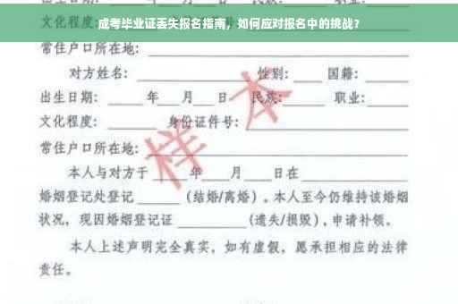 摘要:面临成考毕业证丢失的困境,如何顺利报名?需及时联系颁发毕业证的机构,获取相关证明文件。可在学信网下载学籍、学历信息报告作为补充证明。报名时,如实填写毕业证丢失情况,提交相关证明材料。确保在规定时间内完成报名流程,并密切关注报名进展,及时解决问题。