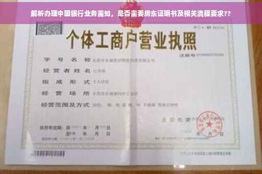 摘要:关于办理中国银行业务是否需要房东证明书,一篇文章详细解析了银行业务的办理流程与要求。文章指出,在办理银行业务时,根据不同业务类型和具体情况,可能需要提供多种证明文件。房东证明书是其中之一,但并非所有业务均需要。读者可了解银行办理业务的详细流程和要求,以便顺利办理业务。