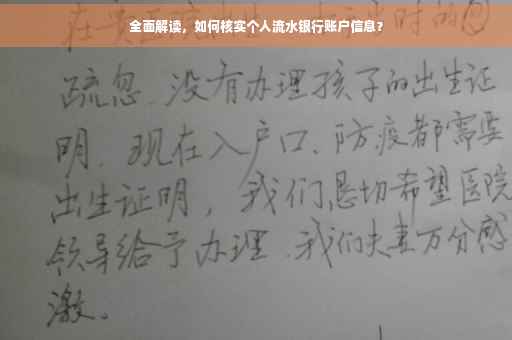 个人流水银行核实是银行业务中的重要环节,对于保障银行业务真实性和客户权益具有重要意义,客户在申请核实时,需了解核实的流程、方式和注意事项,以便顺利完成核实,客户还应保持个人流水记录的准确性,关注异常交易,确保个人权益不受侵害,希望通过本文的介绍,读者能对个人流水银行核实有更深入的了解。