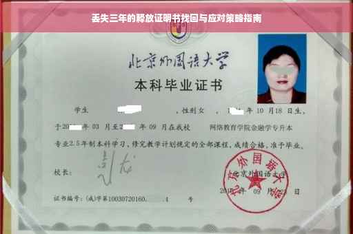 丢失三年的释放证明书需要重新找回时,可采取以下措施:前往原颁发机关或相关司法部门查询档案,获取证明书的复印件或证明文件;向有关部门提出补发申请,提供相关证件及材料,如身份证明、丢失情况等;按照要求完成相关手续,等待审核及补发。面对此类情况,应保持冷静,了解流程,及时采取措施,确保个人权益不受影响。