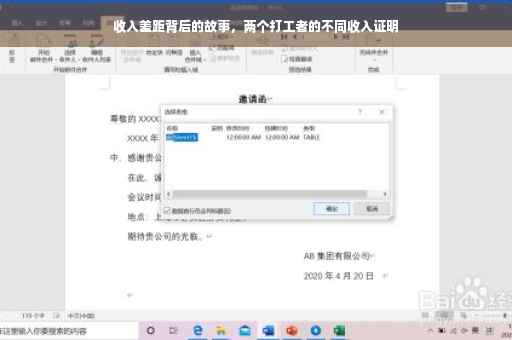在这个时代,越来越多的人选择打工来实现自己的梦想和生活需求,即便是从事相同工作的人,由于多种因素的影响,他们的收入也可能存在巨大的差异,本文将通过两个打工者的收入证明,探讨不同收入背后的原因,并深入分析个人经历、教育背景、行业差异等因素对收入的影响。