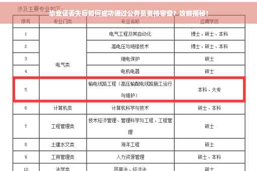 虽然毕业证丢失会给公务员资格审查带来一定的困扰,但只要采取正确的应对策略,我们仍有可能顺利过关,在此,建议大家平时要妥善保管好自己的毕业证,并备份相关复印件,当遭遇毕业证丢失的情况时,要及时补办学历证明,并向审查机构说明情况,提供其他相关证明材料,希望本文能为大家在应对毕业证丢失后的公务员资格审查时提供一定的帮助。