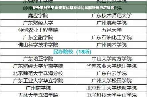 在追求个人职业发展与提升学历的征途上,有时会遇到一些棘手的问题,在准备参加激动人心的专升本报名之际,突然发现不慎遗失了专科毕业证,面对这样的突发状况,许多人可能会感到焦虑和无助,本文旨在深入解析这一问题,为大家提供详尽的应对方案,希望能为遇到类似困境的朋友们提供一些帮助和指导。