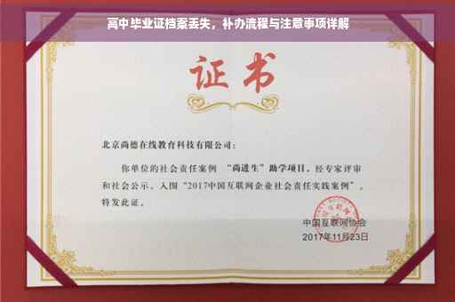 摘要:关于高中毕业证档案丢失的问题,补办流程需先前往原学校查找档案备份,确认档案确实丢失后填写补办申请表。准备好相关证件,如身份证、学历证明等。在补办过程中,需注意提交申请的时间节点,以及保持与原学校的沟通。补办完成后,务必妥善保管新档案。此文旨在帮助丢失高中毕业证档案的朋友们顺利补办,避免不必要的麻烦。