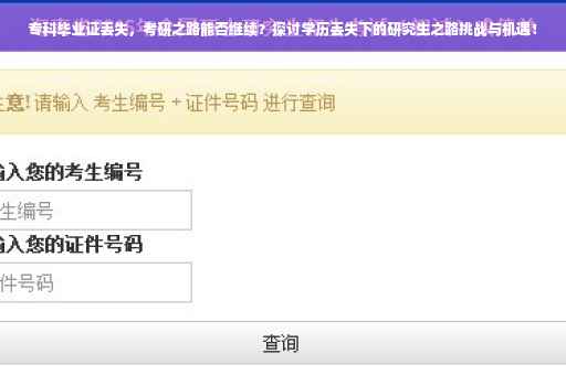 专科毕业证是证明一个人学历的重要证件,一旦丢失,确实会对个人的学业和职业发展产生一定的影响,尤其是在考研这样的关键时刻,很多高校都会要求考生提供相关的学历证明,专科毕业证丢失可能会给考研之路带来一定的阻碍。