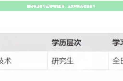 摘要:,,本文将揭示保证书和证明书之间的差异。保证书通常用于担保某种承诺或责任的履行,具有担保性质,涉及个人或组织的信誉和承诺。而证明书则是一种证明某一事实或情况的真实性的文件,通常由权威机构或组织出具,具有证明和确认的作用。通过深入了解两者的区别,可以更好地理解它们在日常生活和工作中的应用场景和重要性。