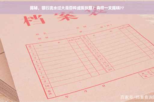 近年来,随着金融市场的快速发展,银行业务日益繁忙,银行流水作为个人和企业经济活动的重要体现,其规模逐渐增大,在某些情况下,银行流水过大可能会引发一些法律风险,甚至构成拒执罪,本文将围绕这一主题展开讨论,帮助公众了解相关法律规定和风险点。