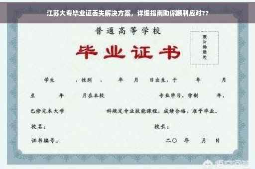 当您的江苏大专毕业证丢失时,不必过于慌张,按照上述步骤行动,与原毕业学校保持密切联系,准备相关材料,提交申请并耐心等待,关注其他可能的解决方案,希望本文能够帮助您顺利解决毕业证丢失的问题,如还有其他疑问,欢迎随时向我们咨询。