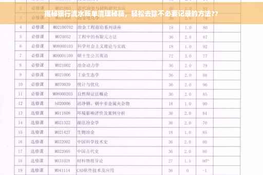 虽然我们不能直接删除银行流水账单中的记录,但通过以上方法,我们可以实现“去除”不必要记录的效果,在处理银行流水账单时,请务必遵守法律法规,保护个人信息,谨慎操作,希望本文能为您带来帮助,如果您有任何疑问或需要进一步的建议,请咨询专业人士。
