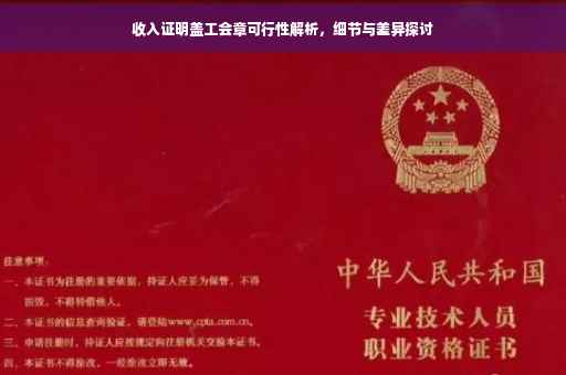 摘要:关于收入证明盖工会章是否可行的问题,需深入探讨其细节与差异。收入证明是证明个人收入状况的重要文件,而工会章的使用需遵循相关法律法规和工会规定。本文旨在解析工会章在收入证明中的使用规定,以及可能存在的差异和注意事项,为读者提供清晰指导。