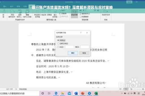 随着金融行业的快速发展,银行账户冻结的情况也屡见不鲜,当您的银行账户因某些原因被冻结时,您可能会面临一系列的问题和疑虑,其中之一便是是否需要提供银行流水,本文将从多个角度深度解析这一问题,帮助您了解背后的原因以及应对之策。
