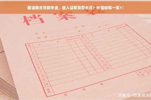 摘要:申请组合贷款时,通常需要提供收入证明。这是银行或金融机构评估申请人还款能力的重要依据。除了收入证明,申请组合贷款还需提供其他材料,如征信报告、工作证明、贷款用途证明等。确保材料的真实性和完整性,有助于顺利申请组合贷款。详细解读申请组合贷款所需材料,请咨询银行或金融机构获取更多信息。