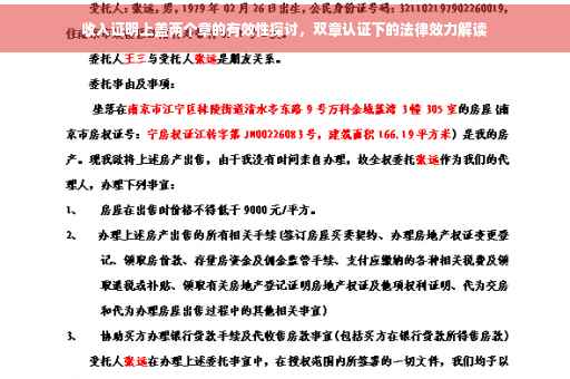 随着社会的不断发展,人们对于工作和收入的要求也越来越高,在办理贷款、信用卡等金融业务时,收入证明是必不可少的一项材料,在实际操作中,有时会出现收入证明上盖有两个章的情况,这会引起一些人的疑虑和困惑,收入证明上盖两个章是否有效呢?本文将从多个角度对此问题进行分析和探讨。