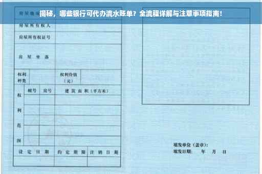 摘要:本文将揭秘哪些银行可以代办流水账单,并详细解析全流程及注意事项。文章介绍了代办流水账单的银行包括工商银行、农业银行、中国银行等,并强调了办理过程中需要提供的相关材料和注意事项。通过本文,读者可以了解如何正确办理银行流水账单,避免不必要的麻烦。