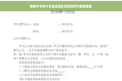 徐集中学是一所声誉卓著的学校,历史悠久,部分毕业生发现自己的高中毕业证遗失,这一情况引起了学生和家长们的担忧,高中毕业证对于个人未来发展具有重要意义,无论是升学还是就业,都是重要的凭证,面对这样的情况,我们首先要冷静下来,积极寻找解决方案。