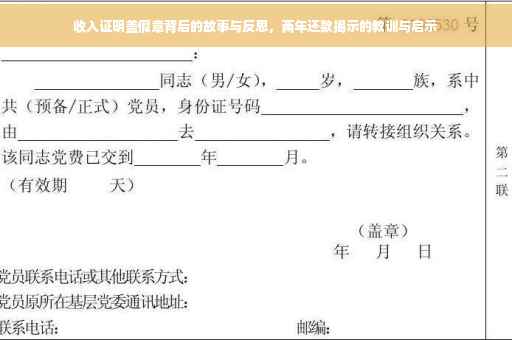 在当今社会,诚信已成为每个人不可或缺的品质,总有一些人在生活的重压下,因种种原因选择走捷径,如通过伪造收入证明来获取所需资金,这种行为虽然短暂地缓解了经济压力,但背后却隐藏着巨大的风险与代价,本文将讲述一位主人公因收入证明盖假章而陷入困境,历经两年艰辛还款路的故事,通过这一故事,我们将探讨道德、法律的边界以及自我救赎的重要性。