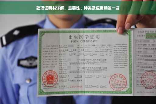 根据不同的标准和需求,款项证明书可以分为多种类型,以下是一些常见的种类: