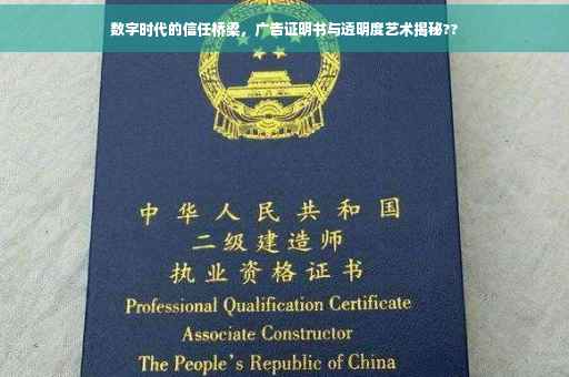 摘要:广告证明书是数字时代建立信任桥梁的关键要素之一。它不仅是品牌与消费者之间的透明度艺术,更是确保广告真实性和合法性的重要证明。随着数字技术的飞速发展,广告证明书在保障广告内容真实性、合法性及透明度方面扮演着至关重要的角色,为品牌与消费者之间建立起坚实的信任基础。