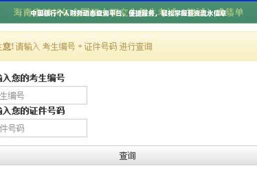随着互联网的普及和金融科技的发展,人们对个人财务管理的要求越来越高,作为国有大型商业银行之一的中国银行,一直致力于为客户提供便捷、高效的金融服务,中国银行薪资流水查询网站便是其重要的服务渠道之一,通过该网站,客户可以随时随地查询个人薪资流水,轻松掌握个人财务动态,本文将详细介绍中国银行薪资流水查询网站的使用方法、功能特点以及注意事项,帮助广大客户更好地利用该网站管理个人财务。