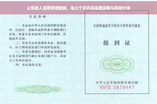 在当今社会,随着经济的不断发展和就业市场的日益繁荣,越来越多的人投身于职场,而在职场中,个人收入证明往往扮演着重要的角色,无论是购房、贷款、办理信用卡还是其他重要事项,收入证明都是不可或缺的一环,对于许多公司而言,如何管理收入证明的开具成为了一个实际问题,本文将探讨公司每三个月开具一次收入证明的管理策略,分析其背后的原因、实践方法和潜在优势。