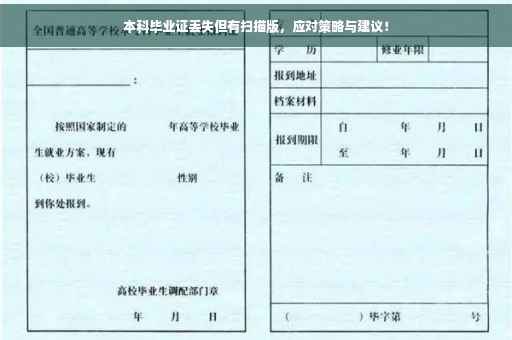 在我们的日常生活中,证件的重要性不言而喻,本科毕业证更是我们教育历程中的重要证明,有时候意外情况会发生,比如毕业证不慎丢失,虽然手头没有实体毕业证,但拥有其扫描版作为备份,或许能为我们提供一定的便利,面对这种情况,我们应该如何应对呢?本文将就此问题展开讨论,并为大家提供一些建议。