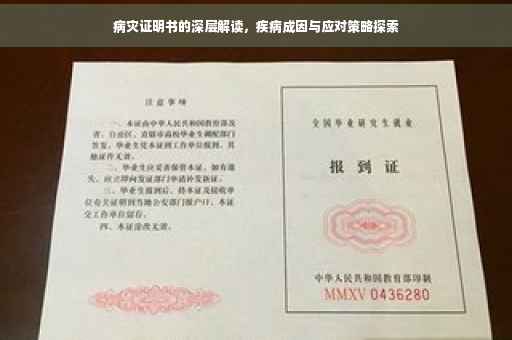在现代社会,随着生活节奏的加快和环境变化的不确定性增加,越来越多的人受到疾病的困扰,病灾证明书不仅仅是一份医学证明,更是揭示疾病背后深层次原因的重要文件,本文将深入探讨病灾证明书的重要性,分析疾病背后的原因,并提出应对疾病的策略,以期帮助人们更好地预防和治疗疾病。