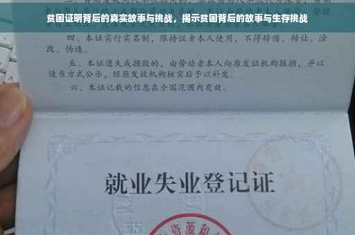 摘要:,,贫困证明书反映了贫困的真实情况,揭示了贫困背后的故事与挑战。这些证明书不仅是贫困家庭争取社会救助的法律凭证,更是他们生活困境的写照。通过这些证明书,我们可以了解到贫困家庭所面临的艰难处境,如教育、医疗、就业等方面的挑战。它们也提醒我们,要关注并帮助这些家庭,助力他们摆脱贫困,实现生活的改善和社会的进步。