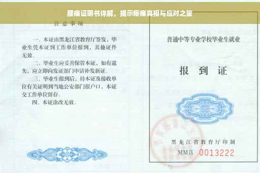 摘要:本证明书详细探讨了腰痛的真相及应对方法。通过深入分析,揭示了腰痛的可能原因,包括不良姿势、过度劳累、疾病等。提供了针对性的解决方案,如调整生活习惯、适当休息、物理治疗等。旨在帮助患者了解腰痛真相,并采取有效措施缓解疼痛,促进身体健康。