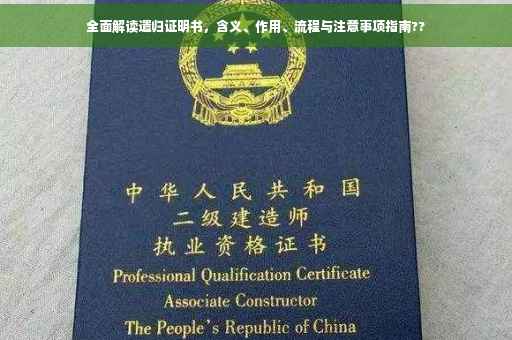 在现代社会中,随着法治建设的不断完善,各类证明文件的规范使用日益受到重视,遣归证明书作为一种重要的法律文件,在多个领域发挥着举足轻重的作用,本文将详细解读遣归证明书的含义、作用、开具流程以及注意事项,帮助大众更好地了解和使用这一文件。