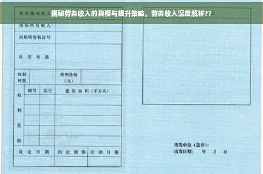 摘要:本文将探讨劳务收入的真相和提升策略。通过深入了解劳务收入的来源和特点,我们将揭示如何合理规划和利用劳务收入,同时提供有效的提升策略。本文将帮助读者更好地管理自己的劳务收入,实现财务自由。通过阅读本文,您将了解到如何最大化利用劳务收入,从而实现个人经济状况的改善。