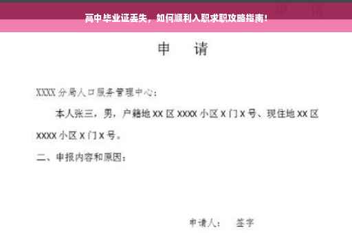 小张在毕业后不慎将高中毕业证遗失,面临入职问题时十分困扰,他首先联系了原高中学校,说明情况后,学校为他开具了学历证明,在求职过程中,小张在简历中注明了自己的学历及补救措施,并在面试时详细解释了情况,入职前,小张提交了学历证明及其他相关证件,顺利入职。