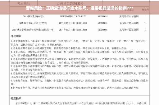 摘要:本文提醒公众警惕风险,学会正确查询银行流水账号的方式,避免陷入违法犯罪漩涡。文章强调了解正规途径的重要性,并呼吁读者提高警惕,保护个人信息和财产安全。通过正确的方式查询银行流水账号,可以有效防范诈骗和非法活动,维护个人和社会安全。