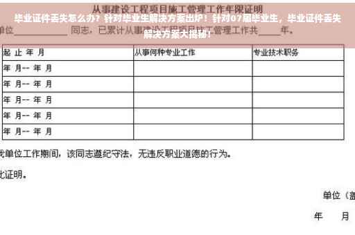 针对07届毕业生毕业证丢失的情况,我们应该及时应对,了解相关规定和流程,按照要求提供证明材料,通过补办、开具证明或寻求法律援助等方式,解决毕业证丢失带来的问题,我们也应该加强个人证件的管理,避免类似情况再次发生,希望本文能为您解决毕业证丢失的问题提供帮助。