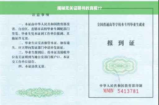 摘要:本文将揭示无关证明书的真相。随着社会的多元化发展,无关证明书逐渐成为公众关注的焦点。本文将通过深入探讨无关证明书的起源、作用及其在实际应用中的意义,揭示其真相,帮助公众理性看待这一问题,避免被不实信息误导。阅读本文,将为您揭开无关证明书的神秘面纱。