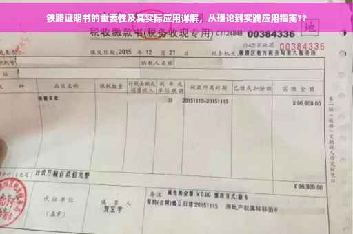 在这个日新月异的时代,铁路作为关键的交通方式,其重要性日益凸显,铁路证明书,作为铁路行业的核心证明文件,更是承载着保障铁路运输安全、维护行业秩序的重要使命,本文将带您深入了解铁路证明书的重要性、种类、办理流程以及实际应用,助您更好地认识这一行业的重要组成部分。