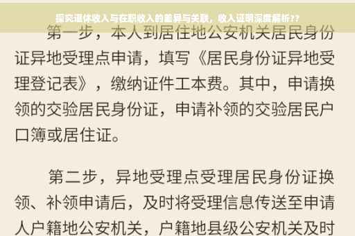 随着社会的发展和进步,越来越多的人开始关注自己的经济状况,尤其是关于收入的问题,无论是即将退休的职工还是在职人员,都对退休收入和在职收入证明充满好奇和关注,本文将深入探讨二者的差异与关联,帮助读者更好地理解这两个概念。