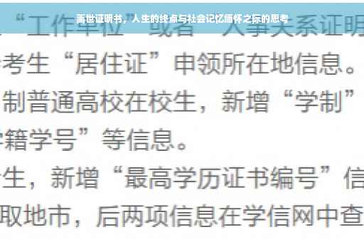 离世证明书不仅是一份法律文件,更是社会与死者家属之间的情感纽带,在办理过程中,社会通过各种方式表达了对死者的哀悼和对家属的慰问,这一过程体现了社会共同尊重生命、关注人性的价值观。