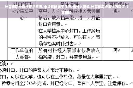 例如你考过了二级C语言的话那么你就可以拿到全国计算机等级考试二级C语言的证书,说明你具有了一定的计算机水平。证书都是二级的,但是上面写的会有不同,同一个级别的不同证书例如二级C语言和二级VB,他们的含金量是一样的,层次是一样的,只不过内容不同,例如你是英语系的第一和日语系的第一一样的意思,都是一样的第一,不过谁懂的都不同。水平很高。计算机四级是计算机等级考试最高一级,也是知识最复杂的一级。报考四级是需要一点信心和勇气的,计算机四级是针对计算机的熟练以及掌握程度进行评估的一种国家型等级考试。考试为无纸化考试,不含操作题。证书由教育部考试中心签发,本证书分别用中文、英文书写,可利于国际交流。