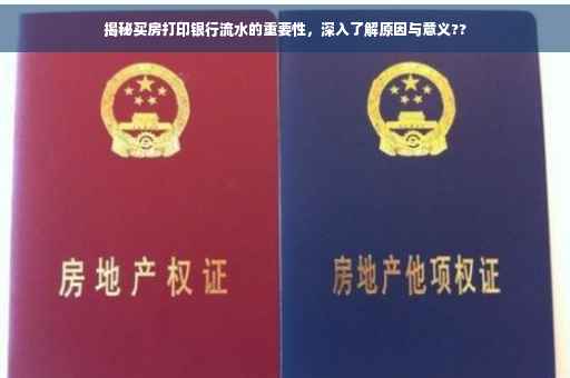 本文介绍了为什么购买房产时需要打印银行流水,深入解析了银行流水在购房过程中的重要性。通过打印银行流水,可以了解购房者的经济状况和还款能力,确保贷款申请的审批过程更加顺利。文章详细阐述了银行流水的作用,帮助购房者更好地理解这一环节的重要性。