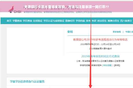 摘要:本篇攻略将为您详细介绍夫妻银行卡流水的查询方法,帮助您轻松掌握查询流程与注意事项。通过简单的步骤,您可以轻松查询银行卡流水,了解资金流动情况。本文还将提醒您在查询过程中需要注意的要点,确保查询结果的准确性和安全性。