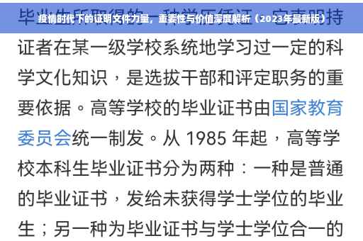 摘要:在疫情期间,证明文件的重要性与价值愈发凸显。证明文件作为真实性的有力证明,对于保障个人权益、维护社会秩序起到了关键作用。随着时代的发展,证明文件的真实力量愈加重要。本文强调了证明书的价值,并探讨了其在疫情时代的重要性。