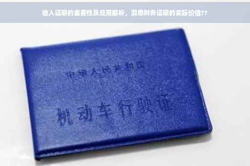 摘要:本文将探讨收入证明的重要性及其实际应用。收入证明对于个人信用评估、贷款申请、租房以及职业发展等方面具有重要意义。本文将解析收入证明的实际应用,包括其如何被用于评估个人财务状况、贷款审批流程以及租赁合同的签订等场景。通过本文,读者将更深入地了解收入证明的作用和如何妥善运用,以更好地满足个人金融和生活需求。